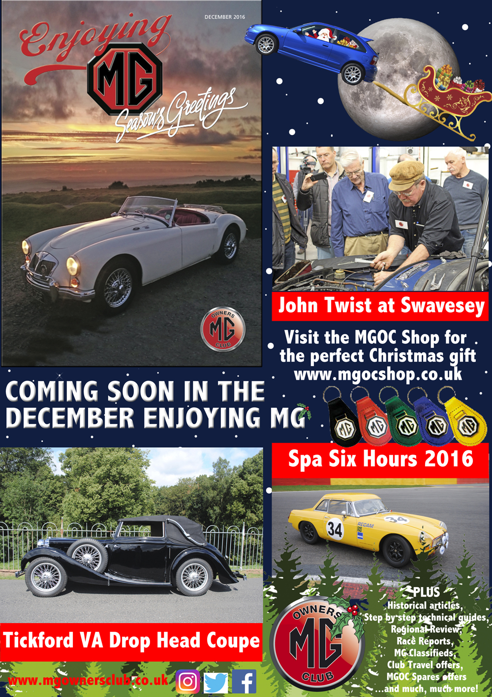 In this month's magazine we look at the elegant Tickford VA drop head saloon, we have all the news from Spa Six Hours 2016 and our excellent John Twist seminars, which we hosted at MGOC HQ.