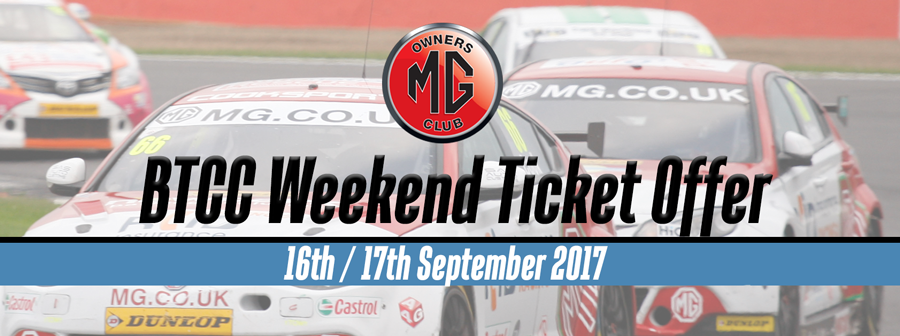 Tickets for the penultimate round of the 2017 British touring Car Championship are available on a special deal for MGOC members. Until the 27th July we can offer an adult two day roving grandstand seating ticket, open paddock access and parking in an internal display area for just £25 and, even better, if you buy one you get one free.